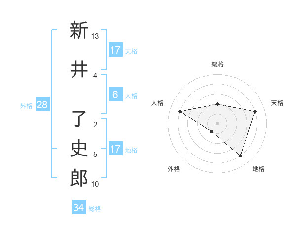 新井 了史郎さんの天格は17画の4点!