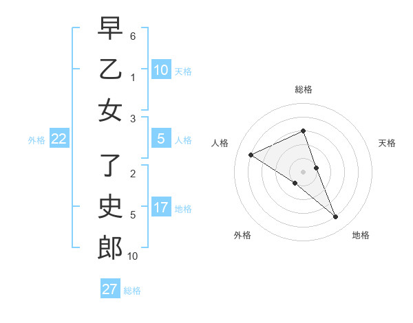 早乙女 了史郎さんの総格は27画の3点!