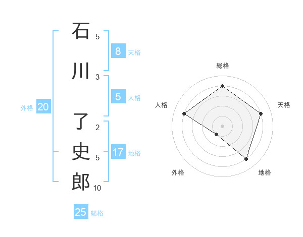 石川 了史郎さんを姓名の画数から五運を鑑定