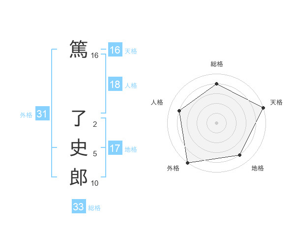 篤 了史郎さんを姓名の画数から五運を鑑定