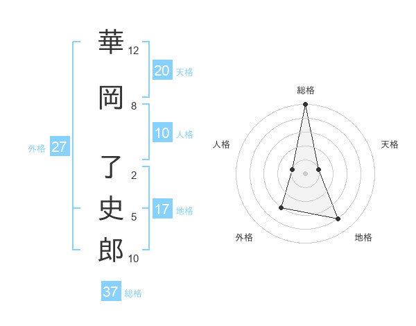 華岡 了史郎さんを姓名の画数から五運を鑑定