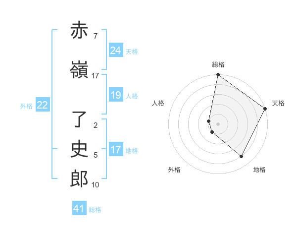 赤嶺 了史郎さんを姓名の画数から五運を鑑定