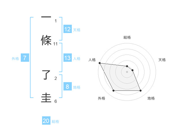 一條 了圭さんの総格は20画の1点!