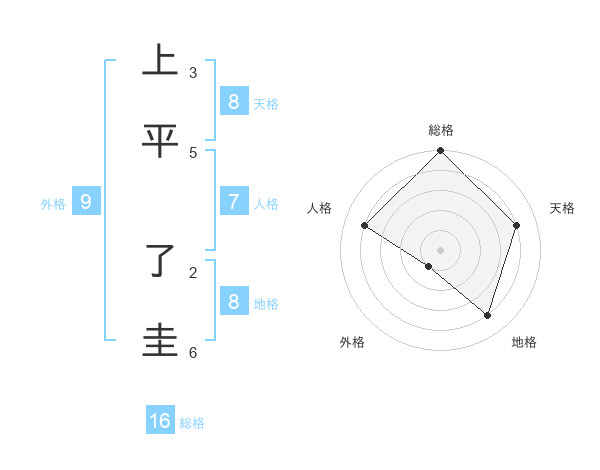 上平 了圭さんの総格は16画の5点!