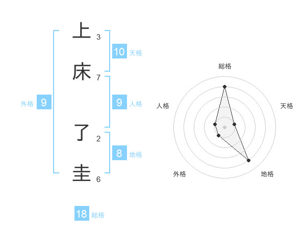 上床 了圭さんの総格は18画の4点!
