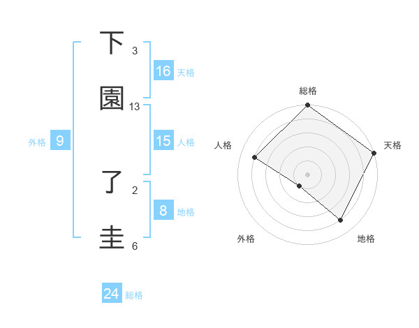 下園 了圭さんの天格は16画の5点!