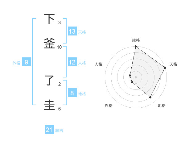 下釜 了圭さんの総格は21画の5点!