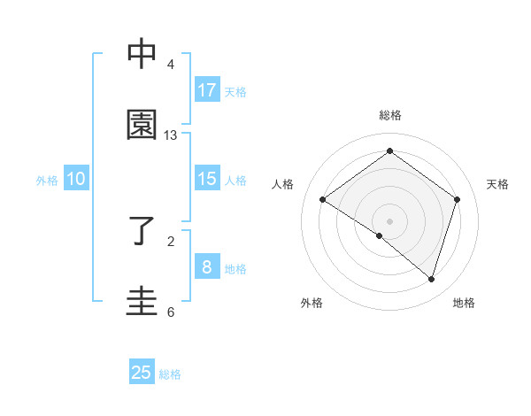 中園 了圭さんの天格は17画の4点!