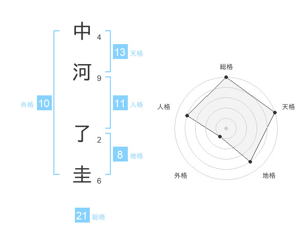 中河 了圭さんの総格は21画の5点!