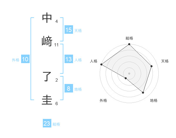 中﨑 了圭さんの天格は15画の4点!