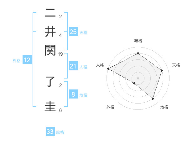 二井関 了圭さんの天格は25画の4点!