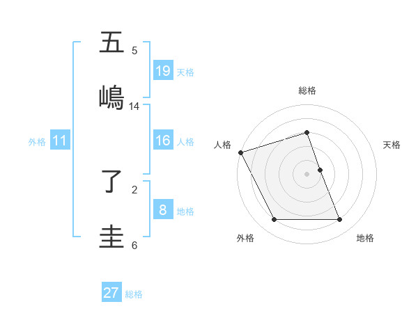 五嶋 了圭さんを姓名の画数から五運を鑑定