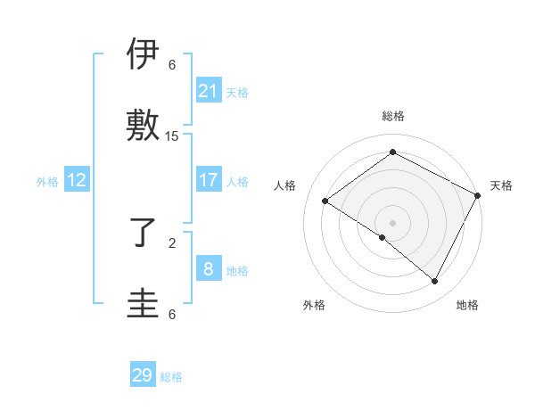 伊敷 了圭さんを姓名の画数から五運を鑑定