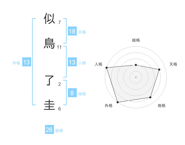 似鳥 了圭さんを姓名の画数から五運を鑑定