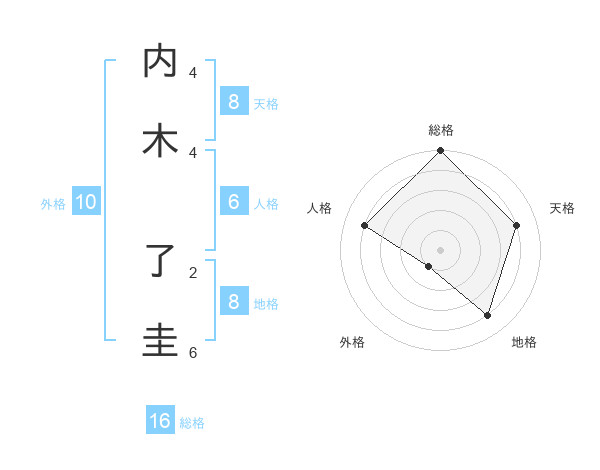 内木 了圭さんの総格は16画の5点!