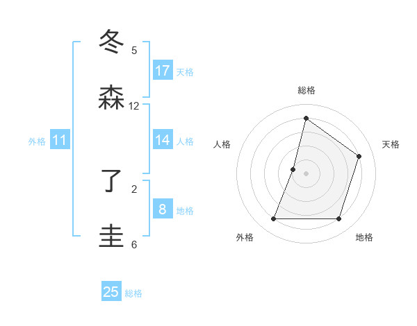 冬森 了圭さんの総格は25画の4点!