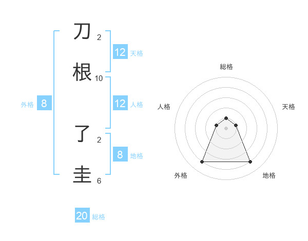 刀根 了圭さんを姓名の画数から五運を鑑定