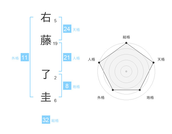 右藤 了圭さんの総格は32画の5点!