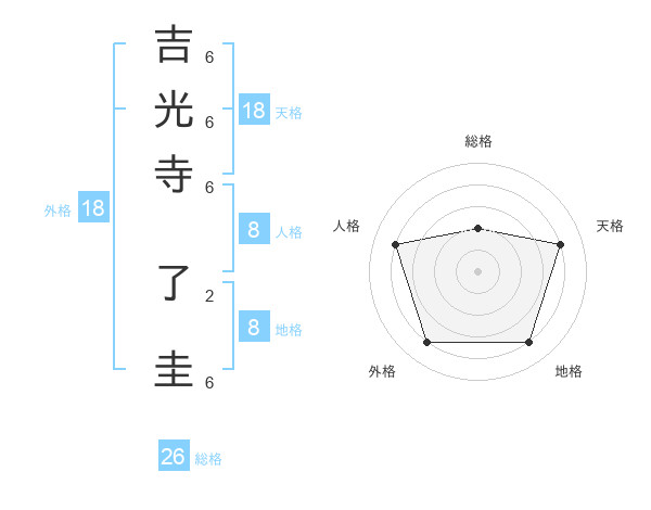 吉光寺 了圭さんの天格は18画の4点!