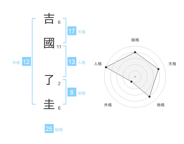 吉國 了圭さんを姓名の画数から五運を鑑定