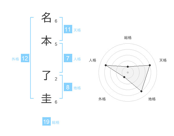 名本 了圭さんの地格は8画の4点!