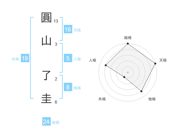 圓山 了圭さんの天格は16画の5点!