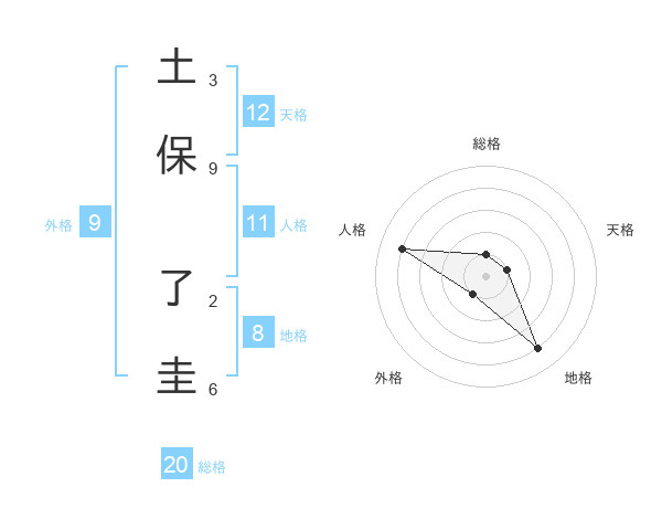 土保 了圭さんの地格は8画の4点!