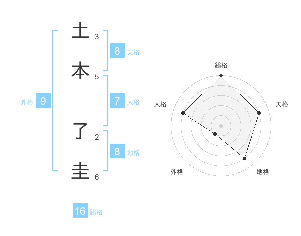 土本 了圭さんの総格は16画の5点!