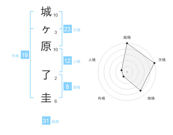 城ヶ原 了圭さんの総格は31画の5点!