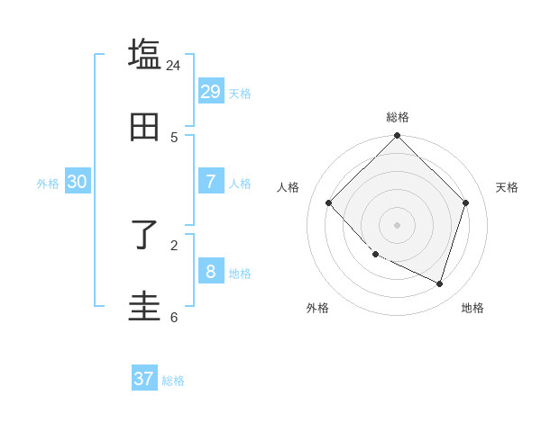 塩田 了圭さんを姓名の画数から五運を鑑定