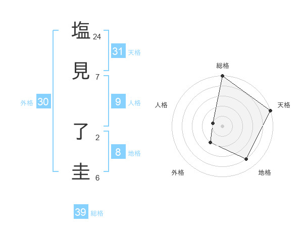 塩見 了圭さんを姓名の画数から五運を鑑定