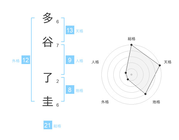 多谷 了圭さんの天格は13画の5点!
