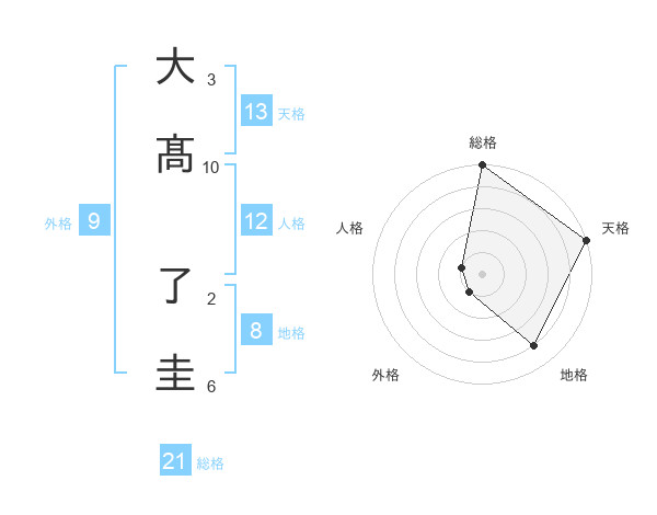 大髙 了圭さんの天格は13画の5点!