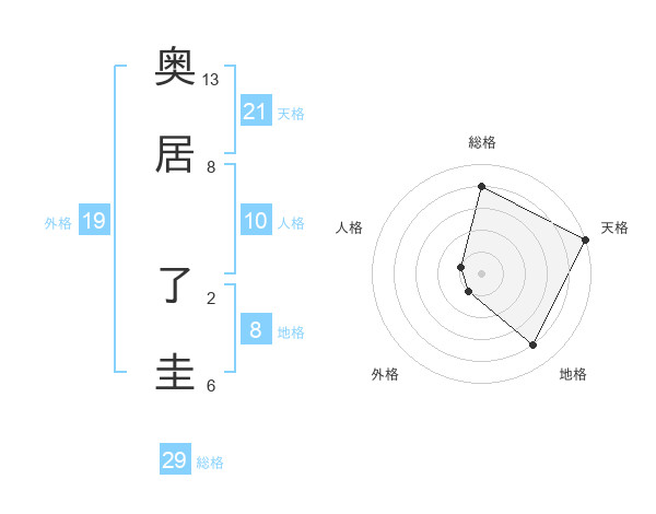 奥居 了圭さんの天格は21画の5点!
