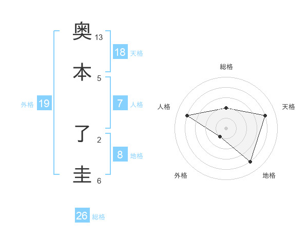 奥本 了圭さんの天格は18画の4点!