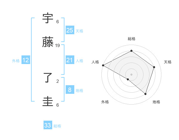 宇藤 了圭さんの総格は33画の4点!