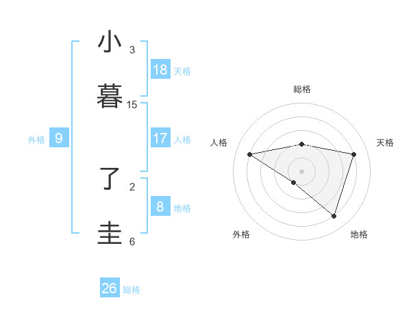 小暮 了圭さんの天格は18画の4点!