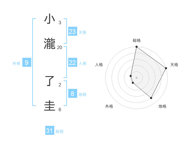 小瀧 了圭さんを姓名の画数から五運を鑑定