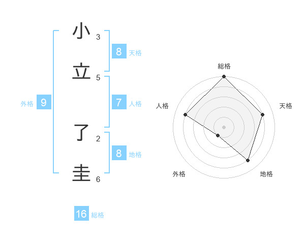 小立 了圭さんの総格は16画の5点!