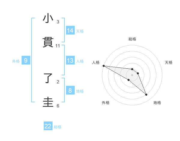 小貫 了圭さんの総格は22画の1点!