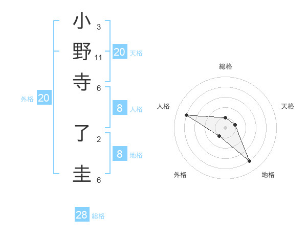 小野寺 了圭さんの総格は28画の1点