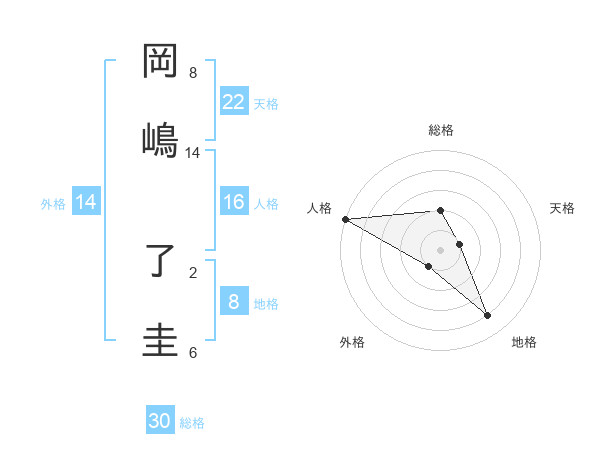 岡嶋 了圭さんを姓名の画数から五運を鑑定