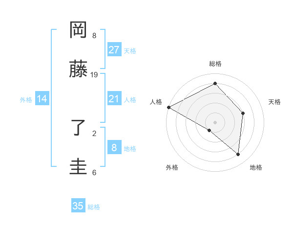 岡藤 了圭さんの総格は35画の4点!