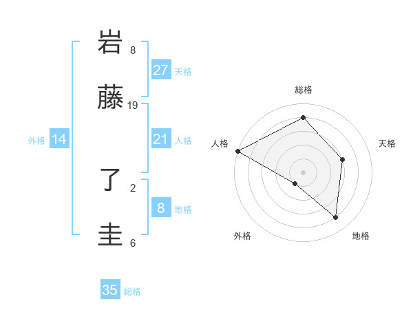 岩藤 了圭さんの総格は35画の4点!