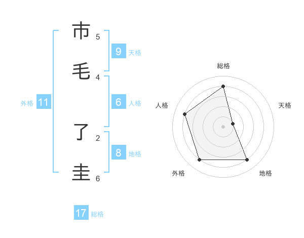 市毛 了圭さんの総格は17画の4点!