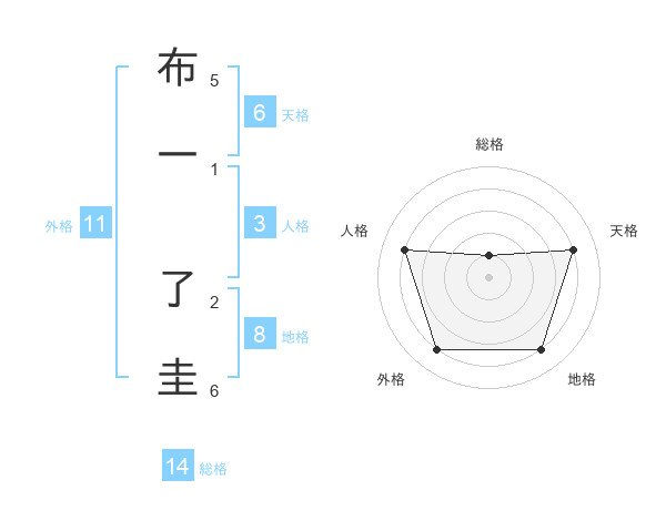 布一 了圭さんの総格は14画の1点!