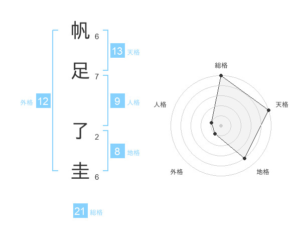 帆足 了圭さんを姓名の画数から五運を鑑定