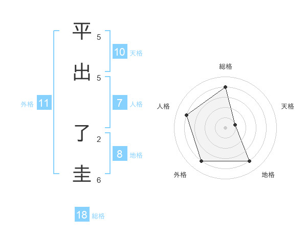 平出 了圭さんの総格は18画の4点!