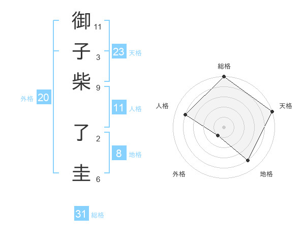 御子柴 了圭さんを姓名の画数から五運を鑑定