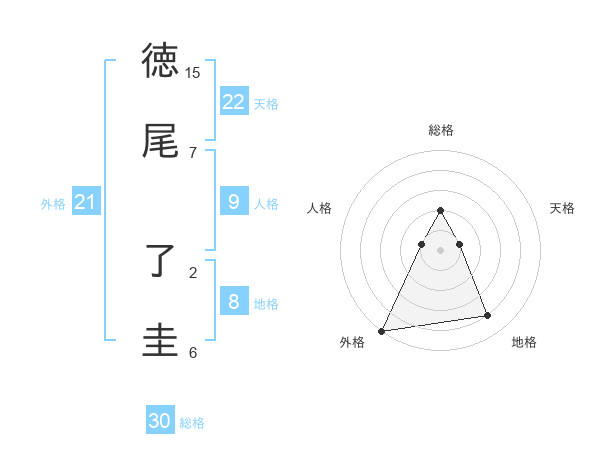徳尾 了圭さんを姓名の画数から五運を鑑定